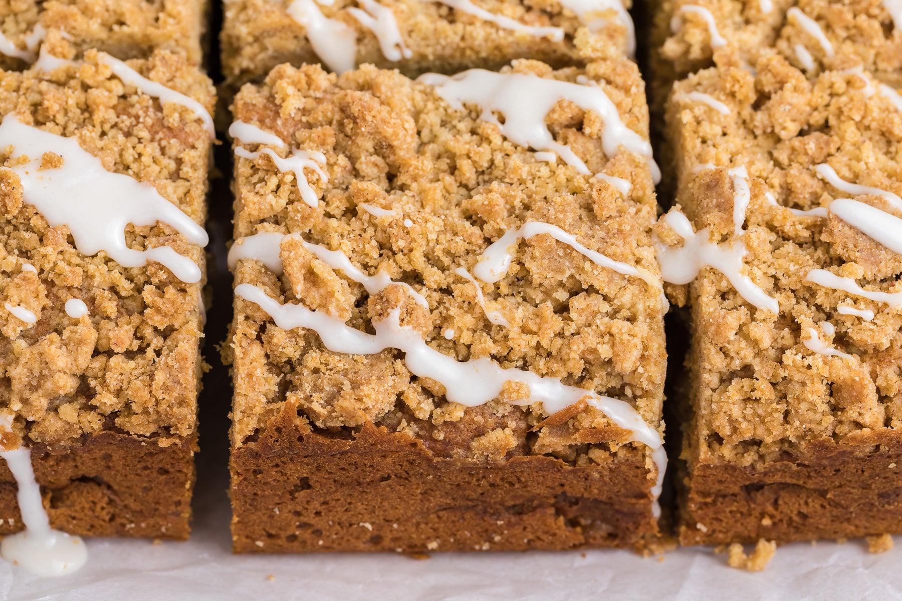 The cake is finished with a drizzle of vanilla glaze, making this the ultimate breakfast or sweet treat.